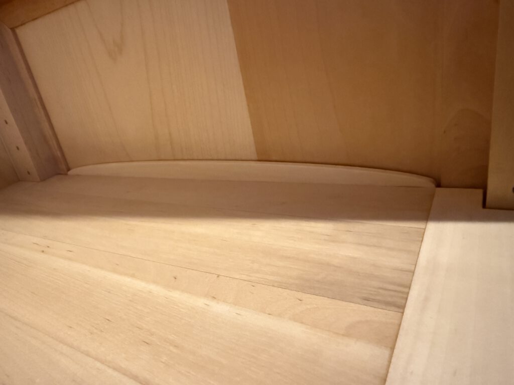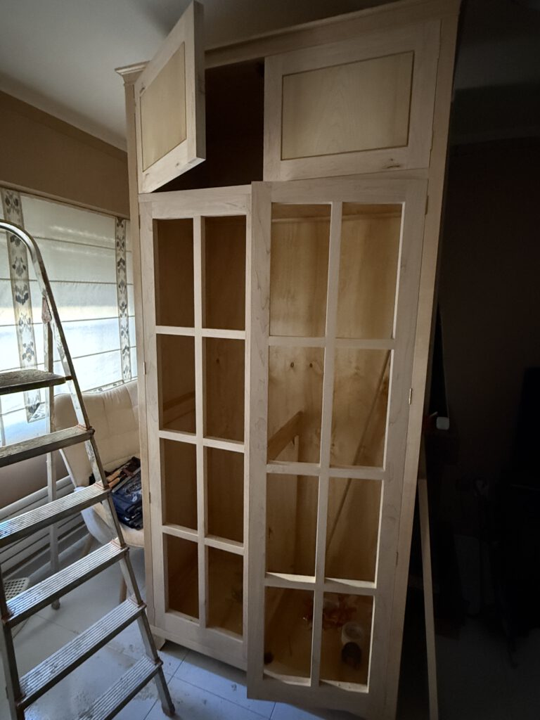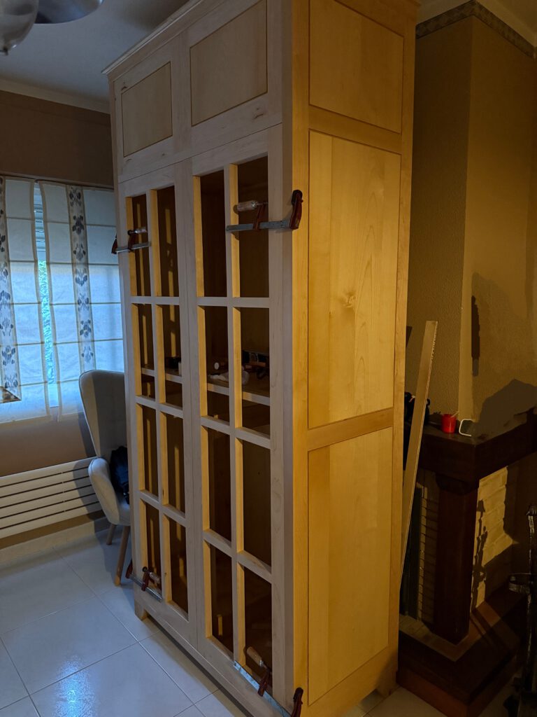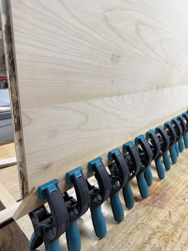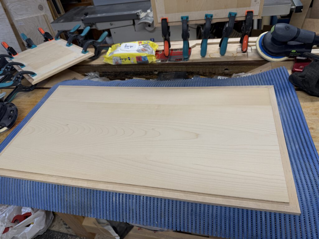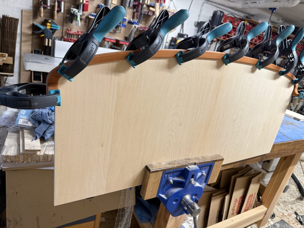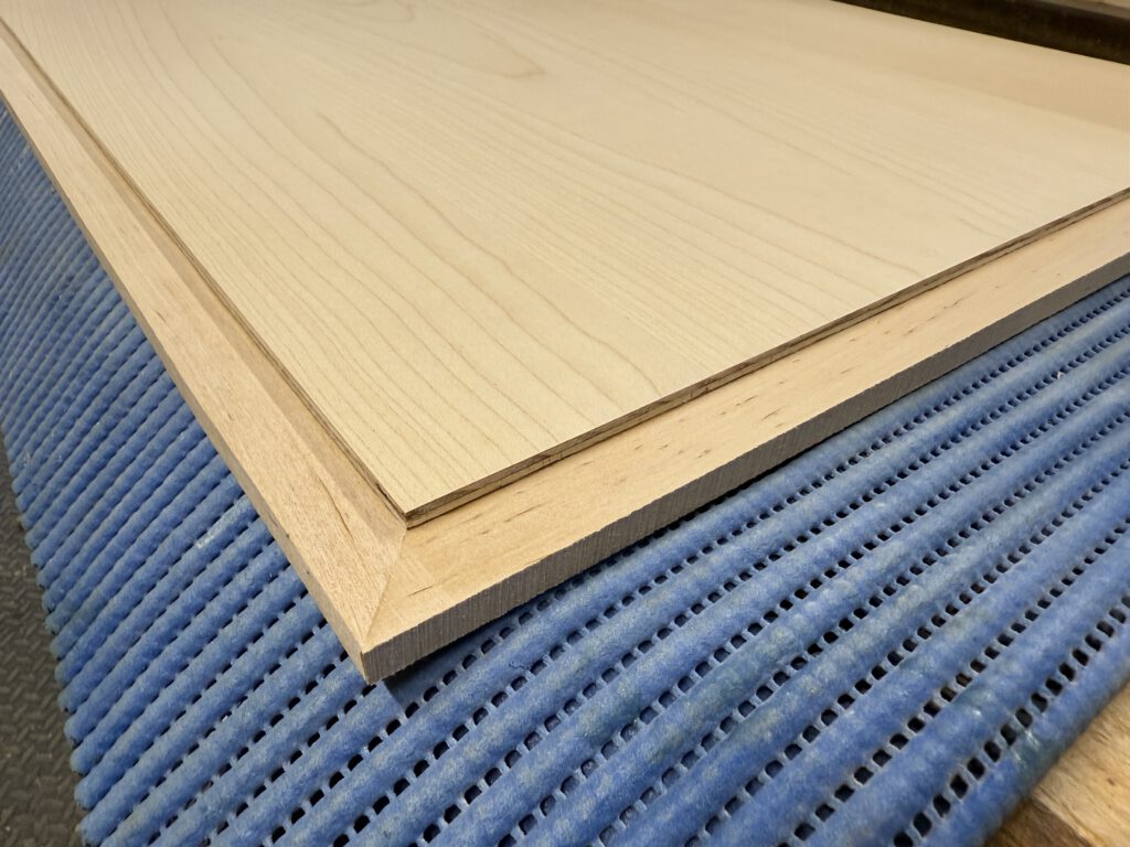 Enfundando madera de abedul con arce, que será es aspecto exterior del mueble.