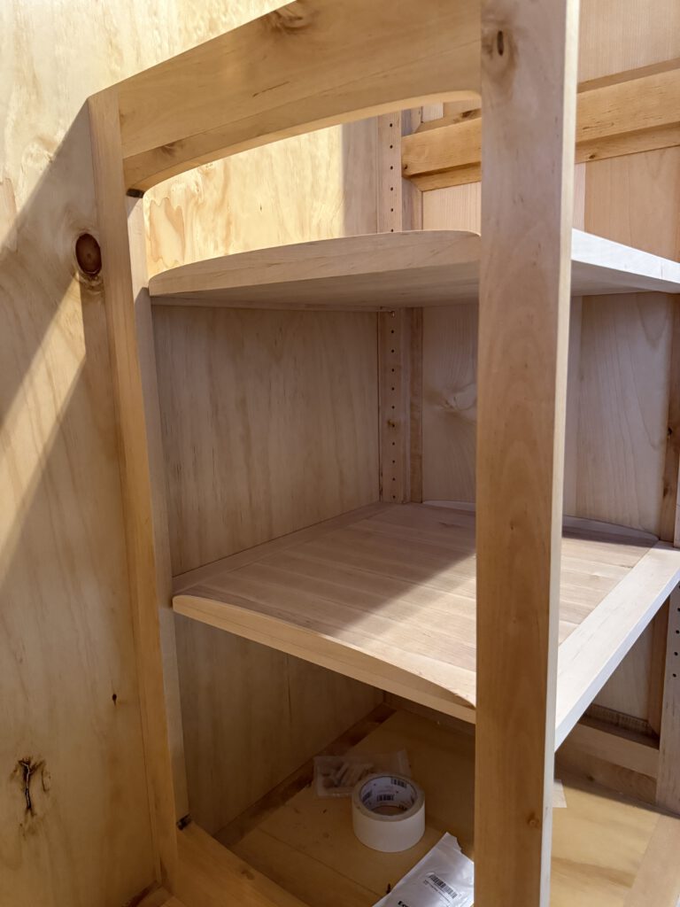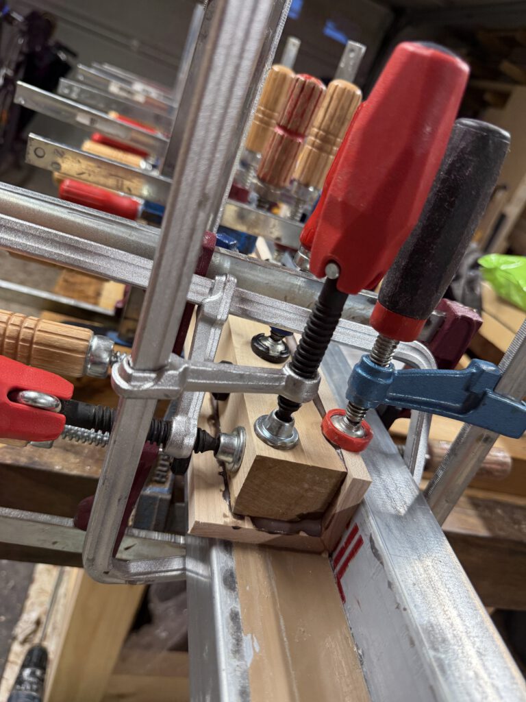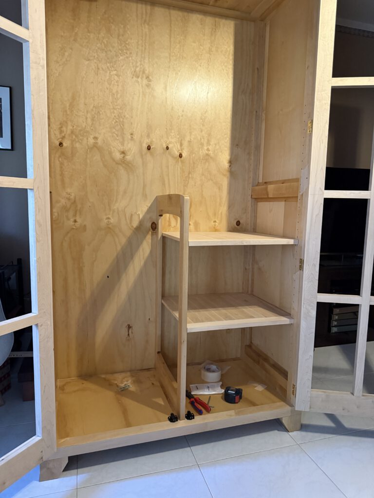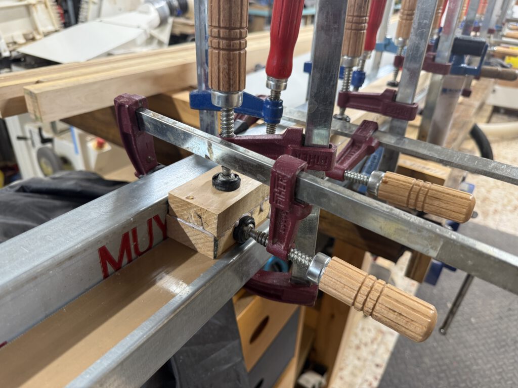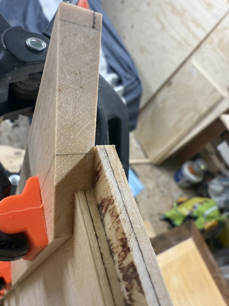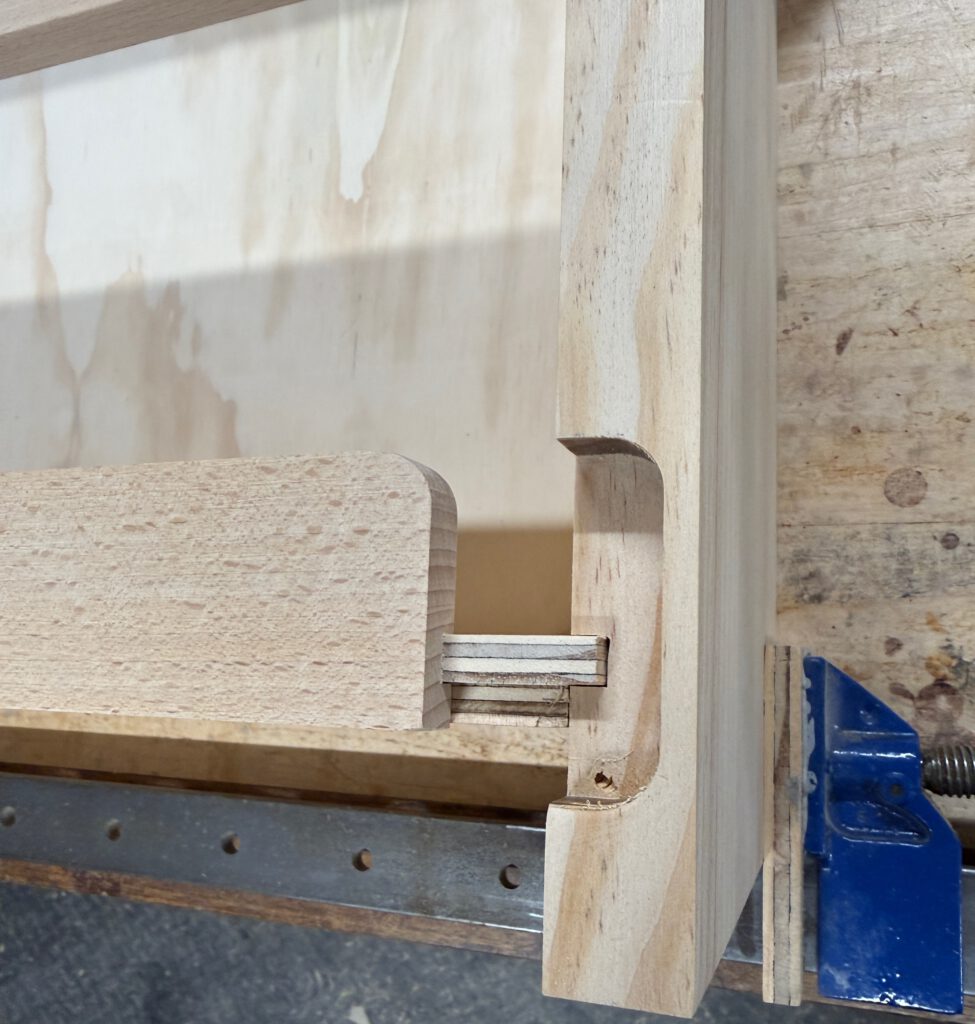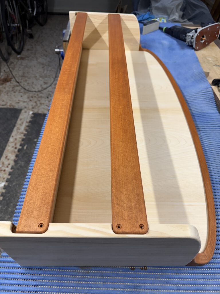 Enfundando madera de abedul con arce, que será es aspecto exterior del mueble.