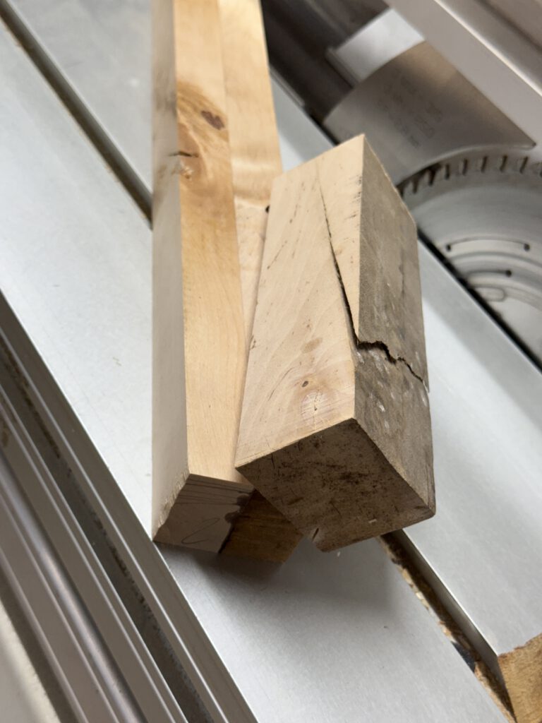 La madera de abedul tiene muchas imperfecciones y hay que hacer muchos arreglos para obtener piezas de la suficiente longitud.