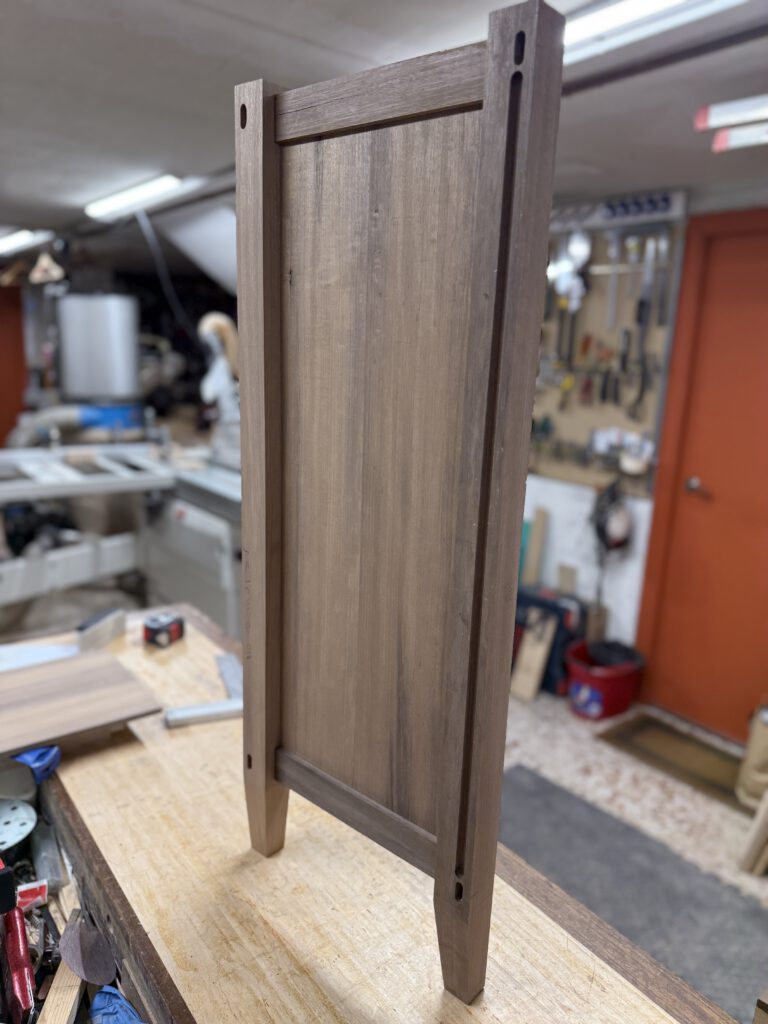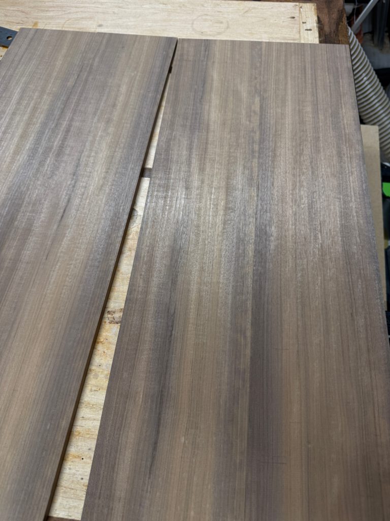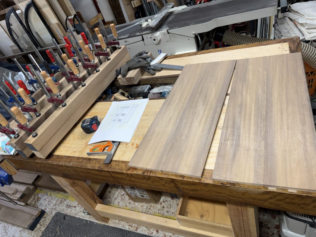 Enfundando madera de abedul con arce, que será es aspecto exterior del mueble.